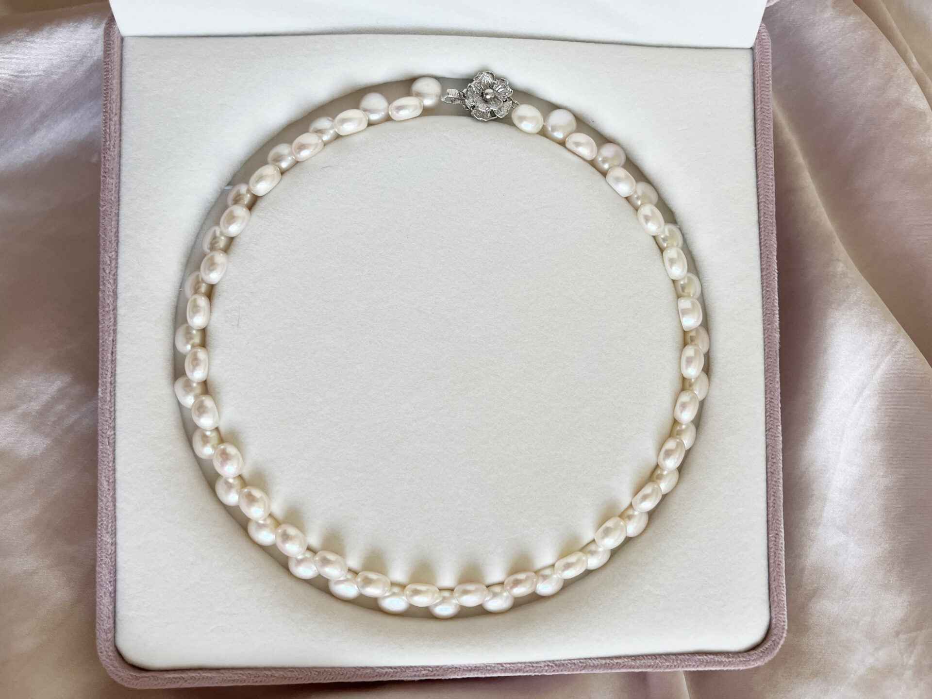 Double-strand design for classic sophistication Natural white freshwater pearls with high luster and smooth texture 9mm bead size, carefully matched for consistency Flower-shaped S925 sterling silver clip for a feminine touch Handcrafted with meticulous attention to detail Ethically sourced, durable, and elegant Perfect for weddings, anniversaries, or luxury gifting  |