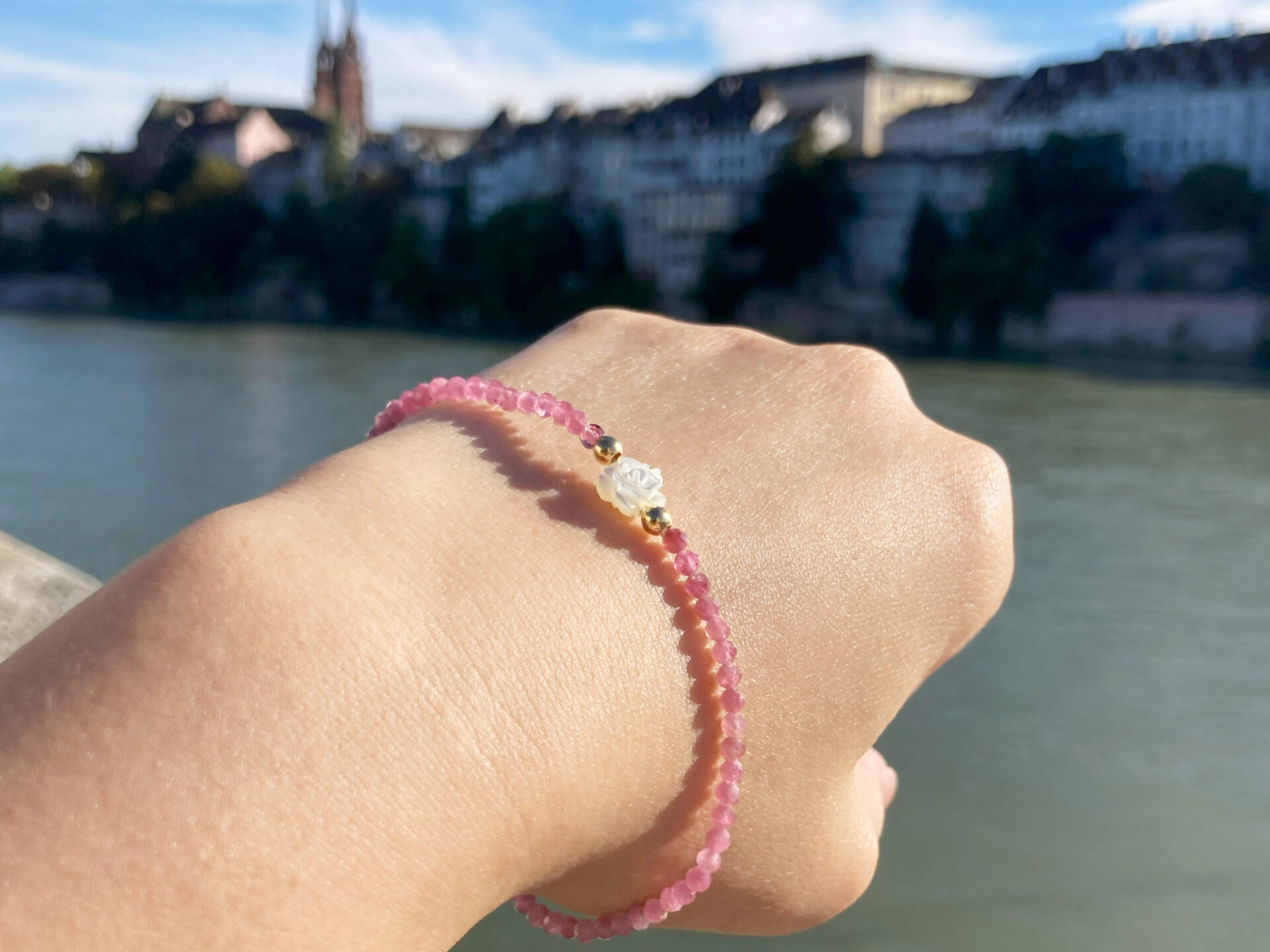 Pink tourmaline has a hardness of 7 to 7.5 on the Mohs scale, making it durable enough for everyday wear in jewelry, though care should be taken to avoid harsh impacts that could chip or scratch the beads. To maintain their luster, it’s recommended to clean them with a soft, damp cloth and avoid exposure to strong chemicals or prolonged sunlight.